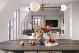 Wer noch mehr Sonne und Licht wünscht – die große Dachterrasse oberhalb der Wohnräume ist nur wenige Stufen entfernt. Im Penthouse werden Grenzen aufgehoben. Fast 200 Quadratmeter Wohnfläche bieten viel Raum für die Entfaltung anspruchsvollster Bedürfnisse.