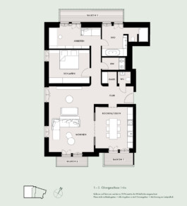 Faszinierend gleich auf den ersten Blick. Der charaktervolle Erker im Turmzimmer bietet die exzellente Gelegenheit, außergewöhnliche Einrichtungsakzente zu setzen. Eine maßgefertigte Sitzecke, ein filigraner Schreibtisch oder ein gemütlicher Lesesessel? Der markante Rundbogen mit seinen drei Fenstern setzt jede Möblierung ins beste Licht und gibt dem ganzen Raum einen prägnanten Auftritt. Insgesamt vier Wohnungen mit Süd-Ost-Ausrichtung verfügen über diesen besonderen Vorzug.